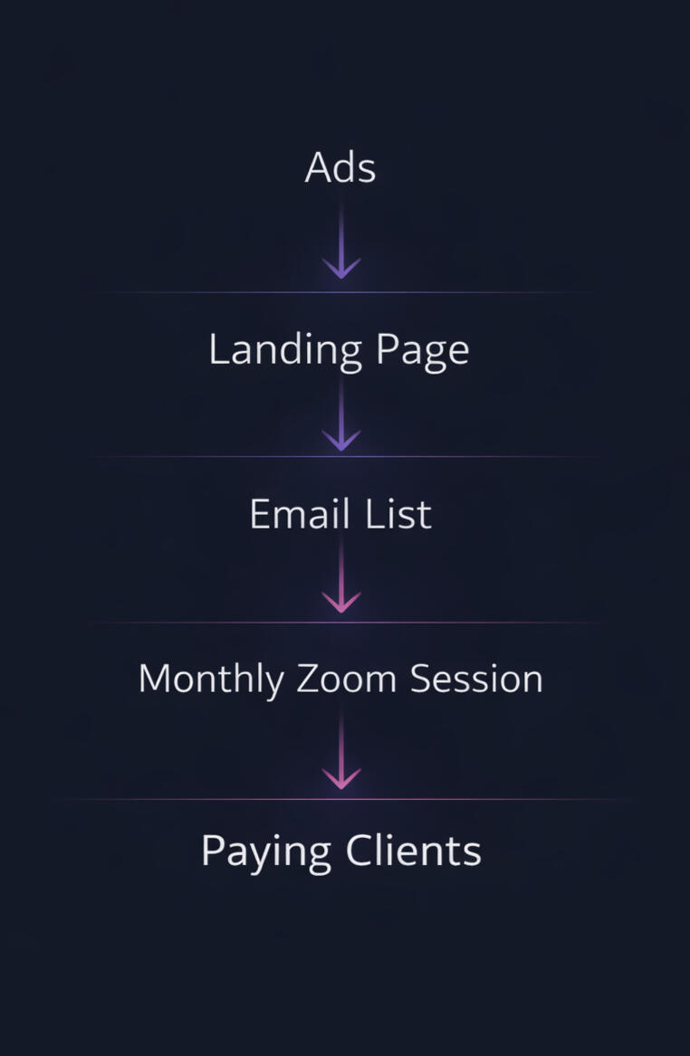 We build your monthly free online session + email funnel so you can grow your list and sell your coaching through trust - not constant posting or chasing clients.